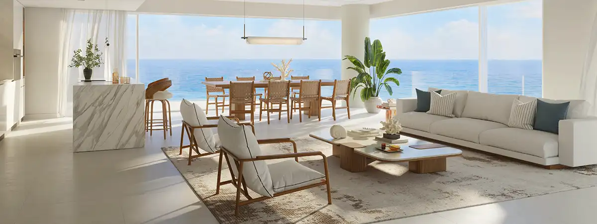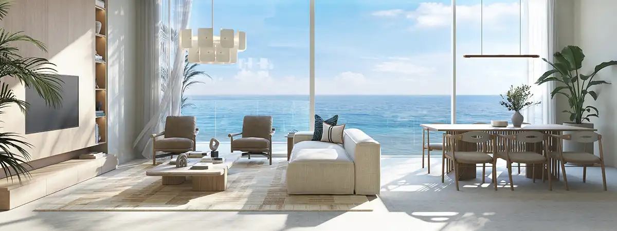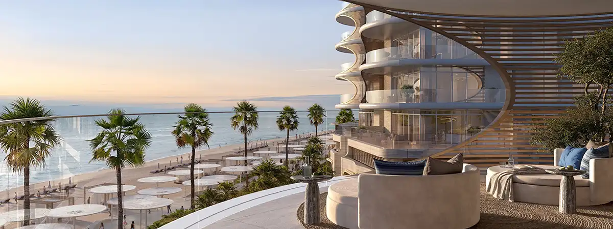 Every residence is shaped by natural light, panoramic sea views, and a soothing ambiance. The architecture, led by renowned architect Koichi Takada, reflects fluid forms inspired by the ocean—curved balconies echo tidal patterns, while open layouts create a seamless indoor-outdoor connection. Interiors feature Italian-branded kitchens, airy palettes, smart storage solutions, and high-end finishes that elevate daily living.