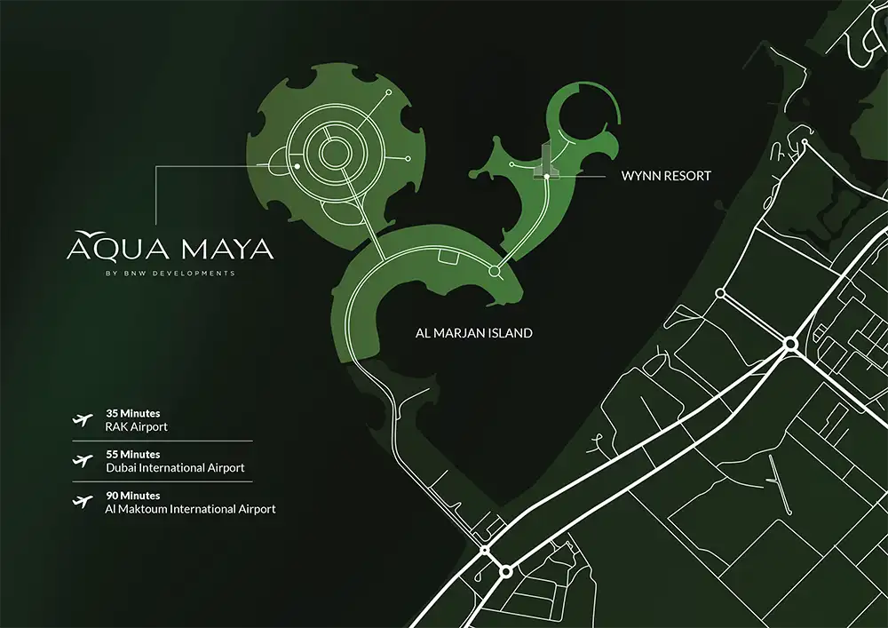 Aqua Maya by Bnw Developments at the Al Marjan Island is strategically located in the city of Ras Al Khaimah, which means that the residents can easily reach the natural beauty and the urban amenities. The development is located on the scenic Al Marjan Island which gives views of a stunning waterfront and also close to the clean beaches. It has the advantage of the well-linked roads connecting to the Ras Al Khaimah city centre, the airport, and major highways that make travelling in the emirate and other regions easy. Nearby shopping, dining, and entertainment options enhance daily living, making Aqua Maya an ideal choice for those seeking a balanced lifestyle in a tranquil coastal environment with excellent accessibility.