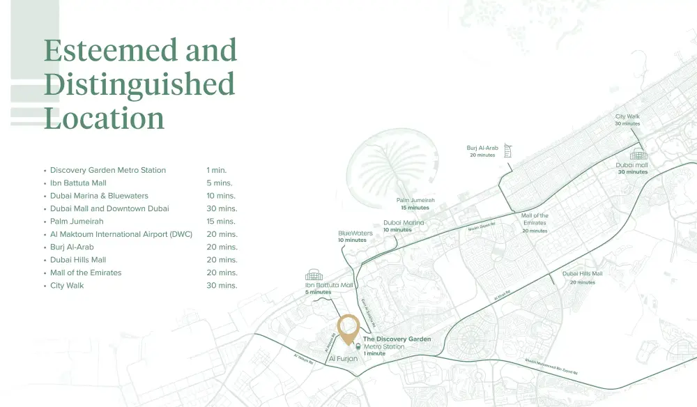 Avenue Residence 8 is located in Al Furjan, one of Dubai's most rapidly expanding residential developments. The location offers excellent connectivity to major road networks, including Sheikh Zayed Road and Sheikh Mohammed Bin Zayed Road, providing easy access to key areas such as Dubai Marina, Jebel Ali, Downtown Dubai, and Expo City Dubai.