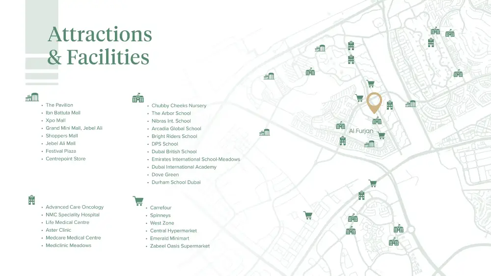 Avenue Residence 8 is part of the wider Al Furjan master-planned community, known for its low- to mid-rise developments, landscaped streets, and pedestrian-friendly environment. The project is positioned to offer privacy and accessibility, with seamless integration into the surrounding residential fabric.