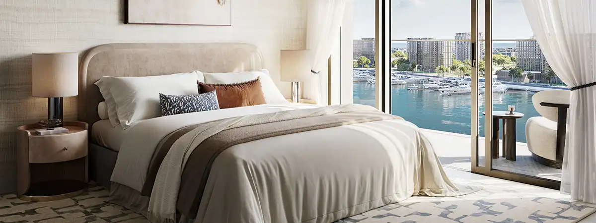 Emaar Baystar by Vida, an exclusive collection of 1, 2 & 3 bedroom waterfront apartments and elegant 4-bedroom homes in the heart of Rashid Yachts & Marina. Here, the city’s energy gives way to the calm of the sea. Baystar by Vida captures the spirit of modern marina living, with elegant design, open layouts, and panoramic views. Floor-to-ceiling windows, flowing spaces, and carefully chosen finishes reflect both beauty and functionality. The interiors echo the playful and warm character of the Vida brand, with rich textures, wood features, and soft, earthy tones creating a serene and stylish atmosphere.