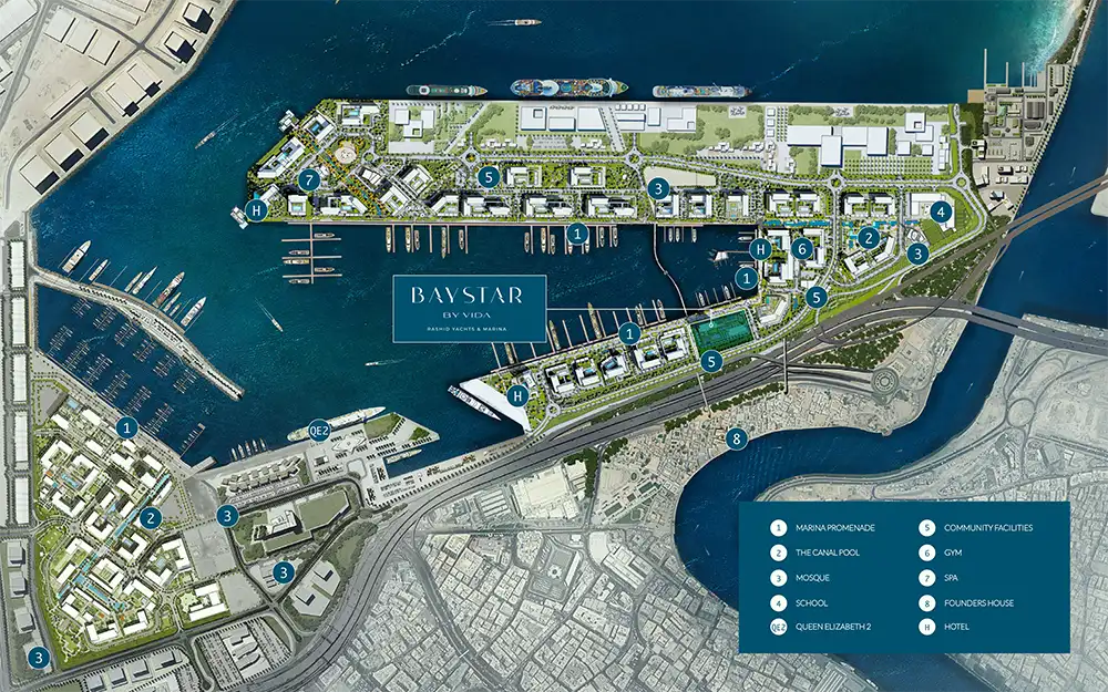 The master plan of Emaar Baystar by Vida is thoughtfully designed to deliver a seamless blend of luxury, leisure, and community living along Dubai’s iconic coastline. Set within the vibrant Rashid Yachts & Marina, this exclusive development is more than just a residential address — it’s a fully integrated lifestyle destination. The layout prioritizes open spaces, waterfront views, and walkable access to retail, dining, and leisure zones, all while maintaining privacy and exclusivity for residents.