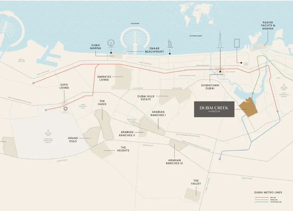 Emaar Lyvia by Palace is an exclusive residential development by the Emaar located in the Dubai Creek Harbour, Offering 1, 2, 3 bedroom apartments and 3 bedroom townhouses. which is all-lively. Lyvia is created by Emaar, which is one of the most well-known real estate developers in the region, and combines outstanding design, luxury, and a modern lifestyle in a central location. The construction belongs to a master-planned waterfront area, which will provide the residents with unparalleled views of Dubai Creek and the future-themed Dubai Creek Tower, which will become the tallest building in the world. The project is well located to provide convenient access to major landmarks such as Downtown Dubai, Dubai International Airport and other major retail and cultural centres.