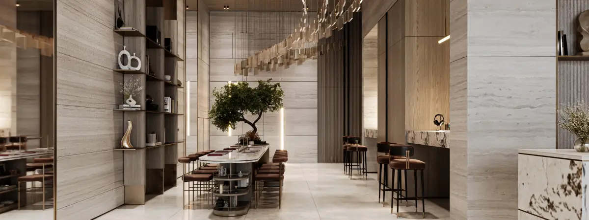 Imtiaz Developments Le Blanc masterplan is a contemporary urbanism, blending style, functionality, type, and community living economically. The development is planned to provide the best utilization of space and comfort, with a memorable 17-storey tower, and an elegant landscaped outdoor and recreational area. The design focuses on a fluid movement of the residential areas to the recreational and wellness areas so that the residents can experience a full lifestyle. The major facilities such as swimming pools, fitness and outdoor lounges, and children's play playgrounds are kept within the comfort and privacy. Reflective pedestrian walkways, green areas, and rest areas make the community more livable. All the aspects of the masterplan designed by Le Blanc are designed to facilitate a balance that will provide the residents with a peaceful and connected living experience in the center of Dubailand.