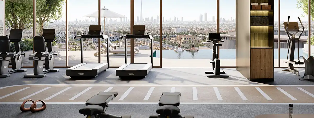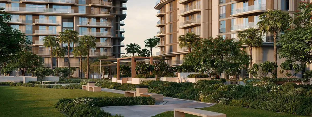 The masterplan of Nourelle in the Madinat Jumeirah Living focuses on an organic fusion of houses, plants and community-based design. The development has three elegant 12-storey high-rise towers that are interrelated through a well-designed sky bridge, which promotes a balance between the city and tranquility. Large foot pavements, shaded hares, and green lawns provide peaceful atmosphere to residents. All the parts, including drop-off zones and recreational areas are well located to promote comfort and accessibility. Rooftop gardens, wellness facilities and the children playground are also incorporated in the project and promote active lifestyle. Enclosed by picturesque views and open areas, Nourelle is a sustainable and luxurious, as well as family-oriented community.