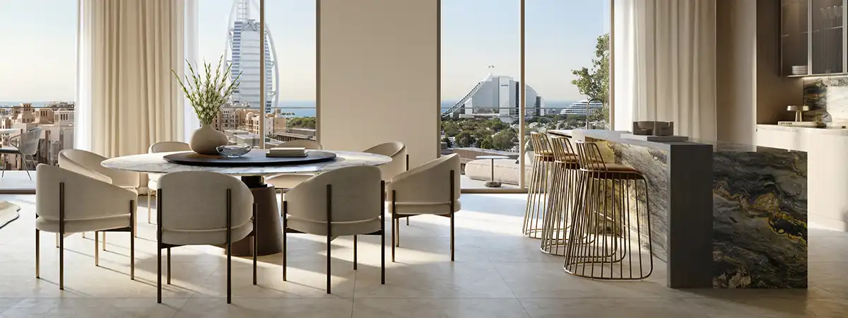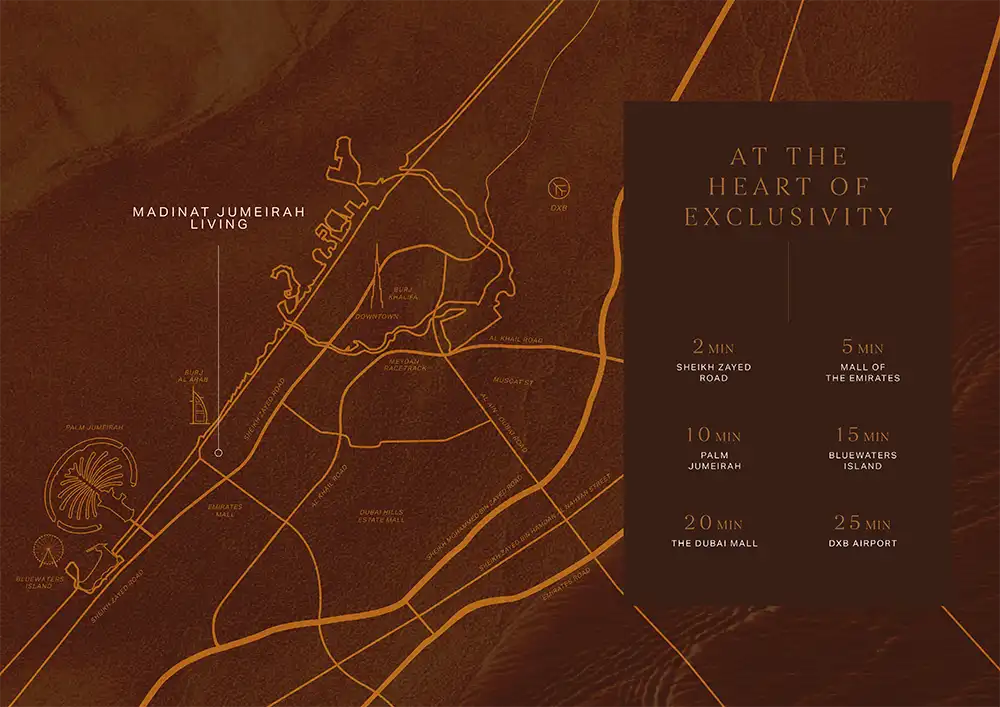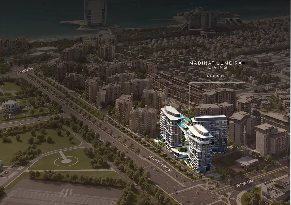 Nourelle is ideally located in Umm Suqeim 3, one of the high-end coastal districts with the essence of the luxury lifestyle in Dubai. It is situated in the legendary Madinat Jumeirah Living, and it provides a spectacular view of the Burj Al Arab and the calm Arabian Gulf to its residents. The development is well connected through the Sheikh Zayed Road, and it has provided easy access to major destinations including the downtown Dubai, Dubai Marina, and Dubai International Airport. The area is also surrounded by famous schools, shopping malls, recreational places, and restaurants; the convenience is present everywhere. The location of Nourelle is a combination of urbanization and the peace of the sea to provide an exquisite lifestyle in the center of Dubai.