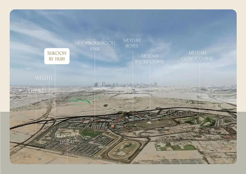 Set against Meydan’s dynamic skyline and tranquil ambiance, the development captures the true essence of balance — where modern living meets natural beauty. With its prime location, cutting-edge design, and serene environment, Sukoon by Nuri stands as a symbol of harmony and luxury, offering residents a place to relax, connect, and experience a truly elevated way of life in Dubai.